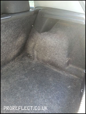 Rear foot well nearly complete; whilst the boot carpet has enough hair in it to make a jumper.