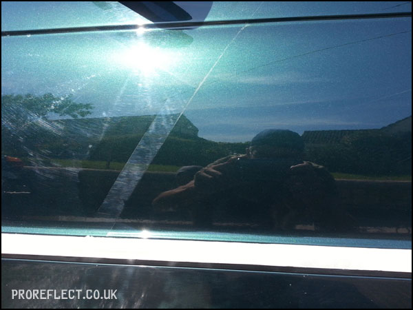 Upon arrival – the sun capturing the thick haze at the rear of the car.